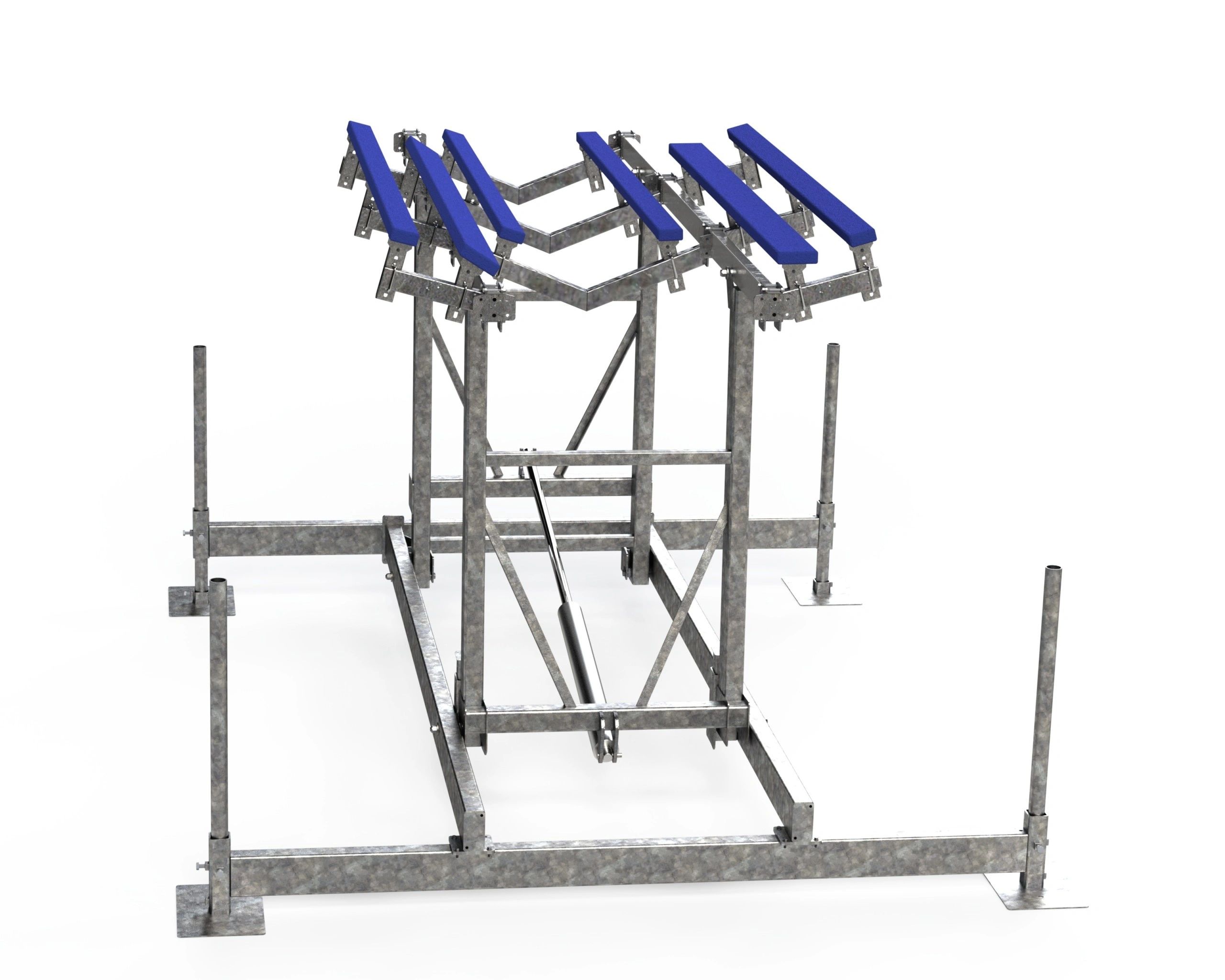 Compatible with 7,000 lb and 8,000 lb galvanized steel Basta Boatlifts, the V-Bunk Kit features a chevron-shaped cradle design that cradles your boat’s hull securely while avoiding contact with strakes. The result? Stable, safe support for your boat every time you lift.